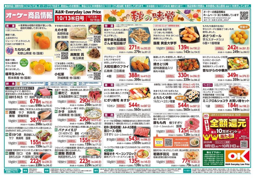 2025年10月13日に公開されたチラシの中から、一時的に安く仕入れることができたという、"更にお買徳"な商品をピックアップして紹介します。
