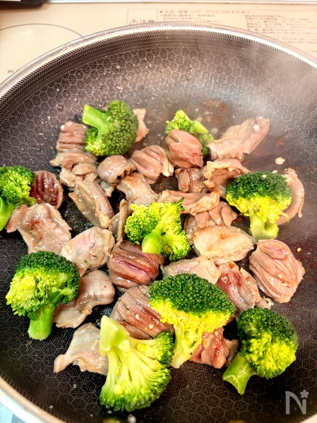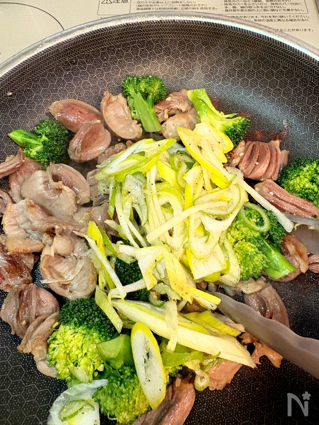 牛タン風♪砂肝とブロッコリーのネギ塩炒め