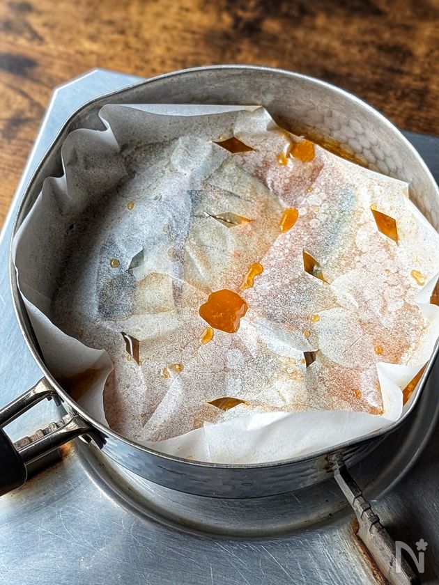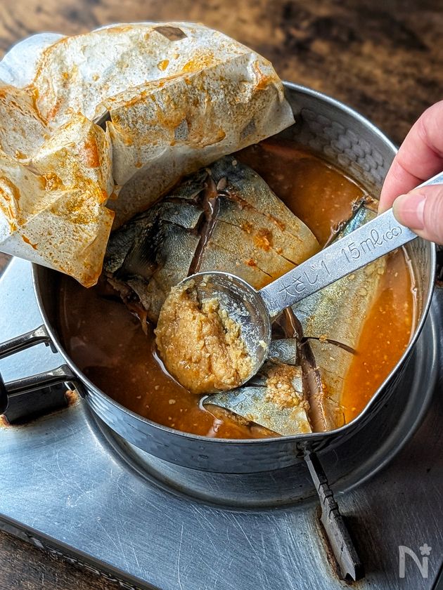 (3) 同じ鍋に【A】を入れよく混ぜたら、真鯖を加え中火にかける。