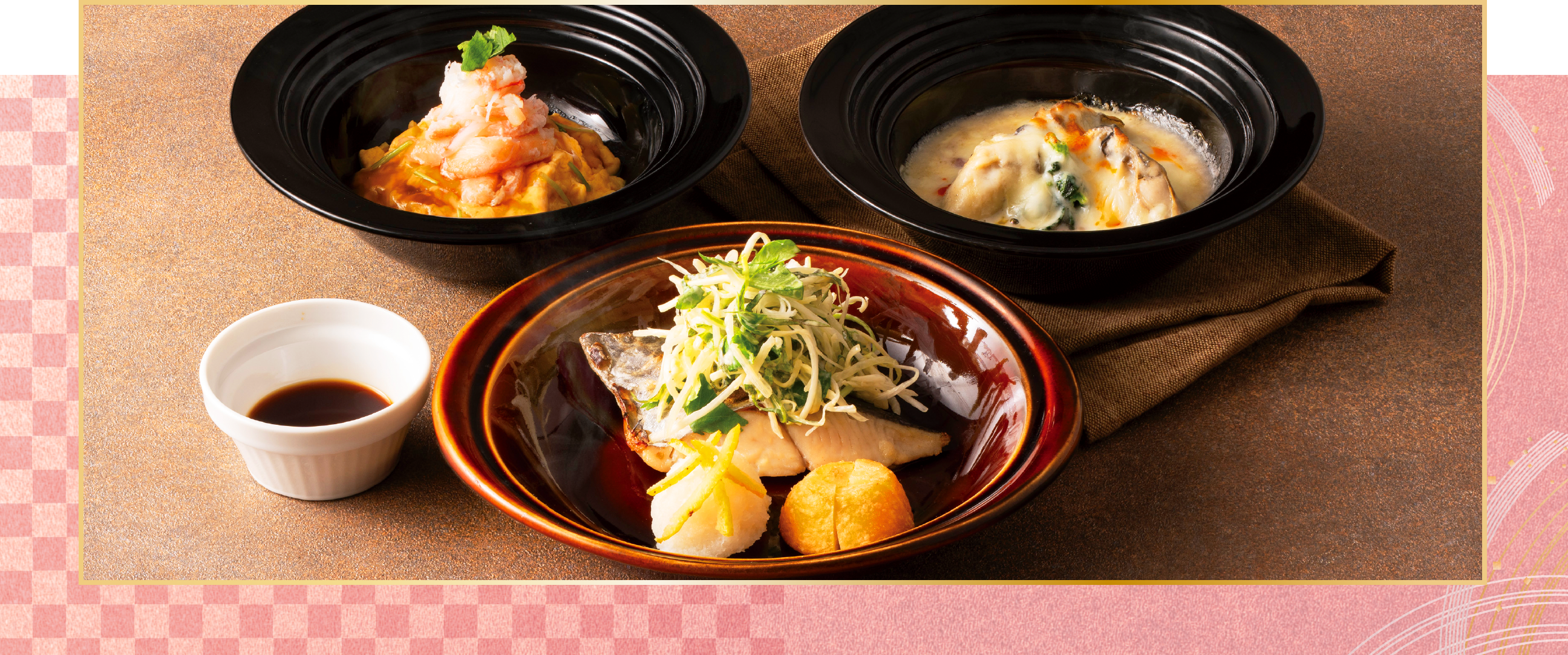- 内容:「鰆の初春焼き」をメインに、副菜2品(「蟹とふわとろたまご、大根のあんかけ」「牡蠣と黒米の白味噌チーズ焼き」)とごはんがついた豪華な御膳です。