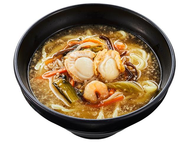 懐かしい味わいの醤油スープに、かっぱ寿司オリジナルの五目あんを合わせ、ぷりっと食感の青森県産ボイルほたてをトッピングした、寒い季節にぴったりの1杯。