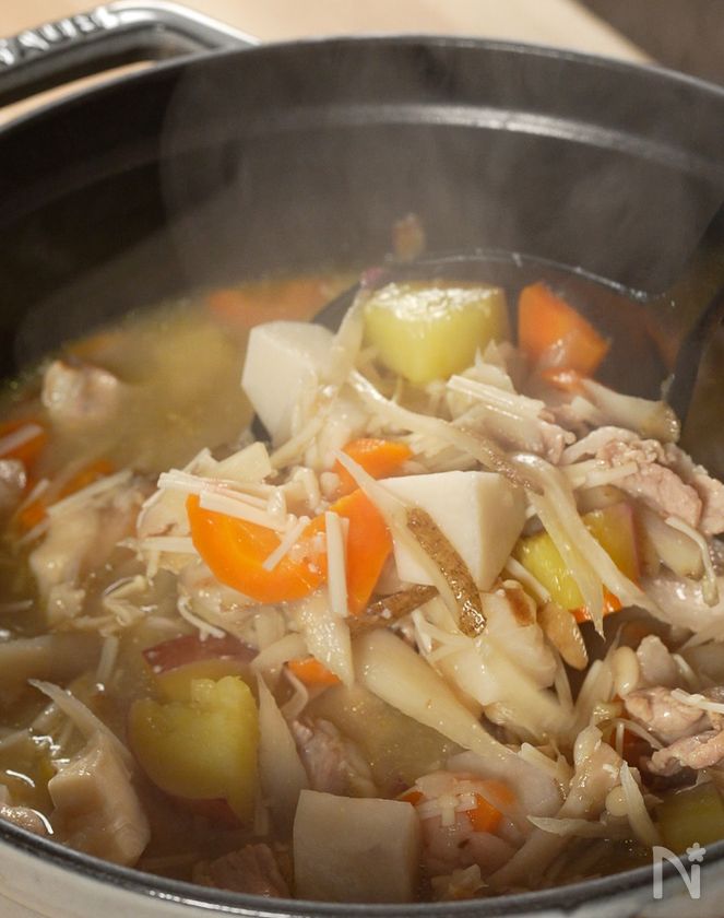 ※水からゆっくり煮ることできのこの出汁や旨みを移し、芋類はホクっと甘くなります。