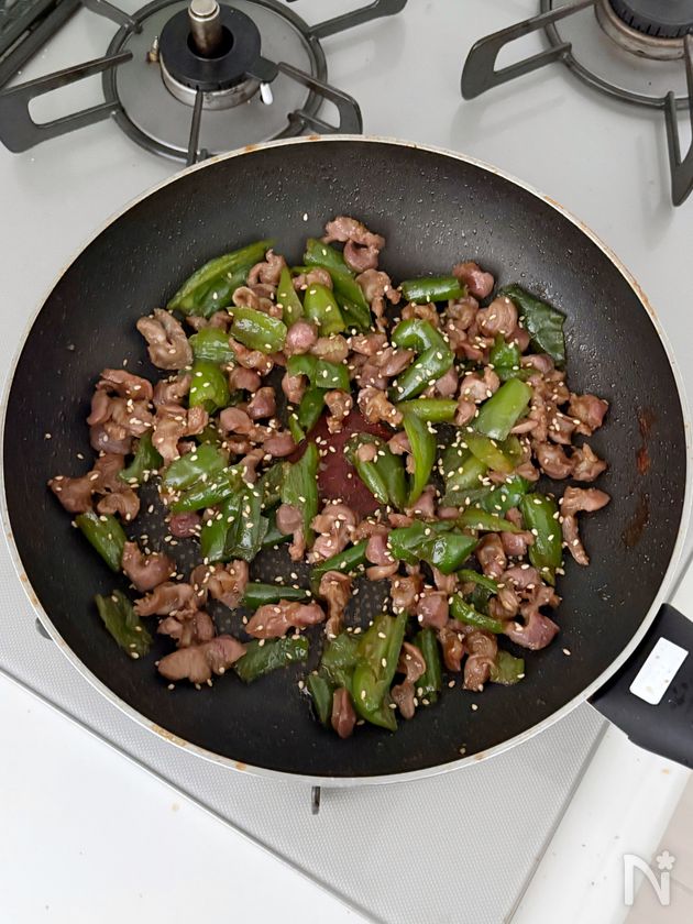 2人分として作りたい方は、調味料はそのままで、砂肝とジャンボししとうを半量にしてください。