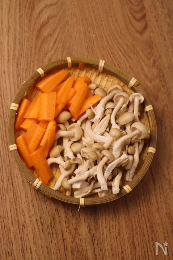 • にんじんやしめじ以外にも、玉ねぎ・キャベツ・他のきのこ類を入れても美味しいです。