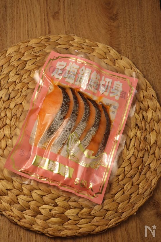 (5) 業務スーパーの定塩銀鮭切身を使用。身がしっかりしていて色合いも綺麗。1切れの大きさは約20センチと食べ応え抜群。