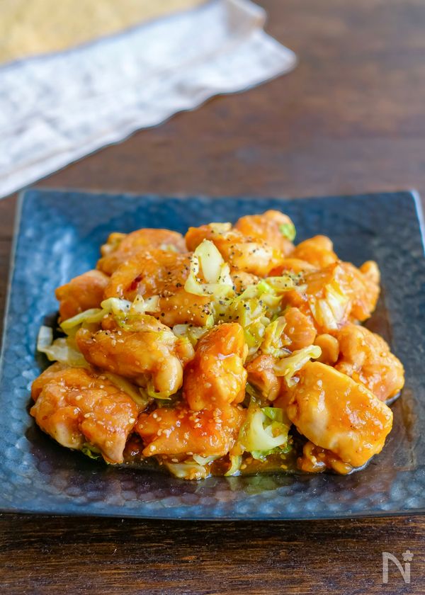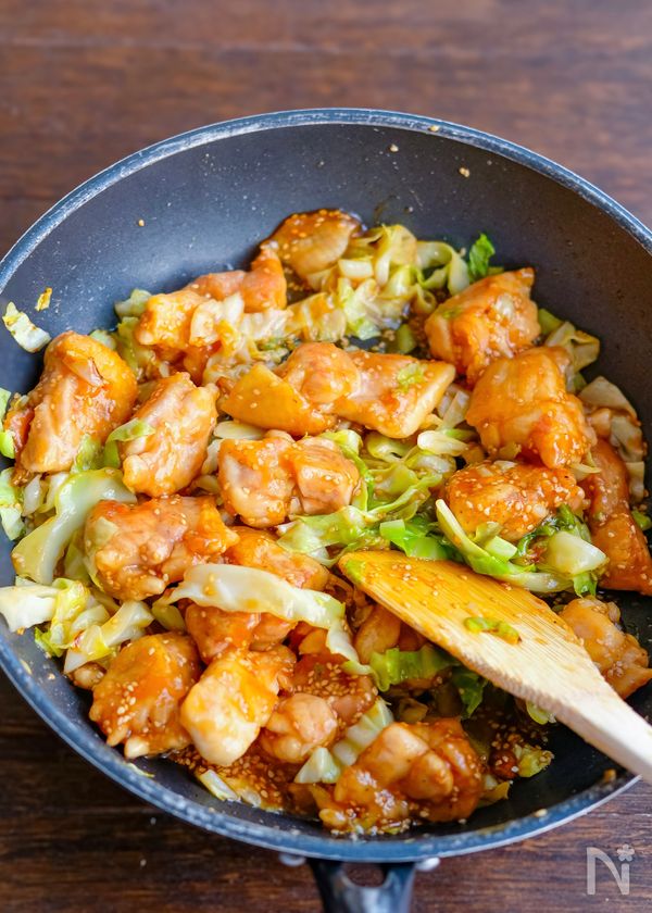 鶏肉ときゃべつの甘酢ごま照り炒め