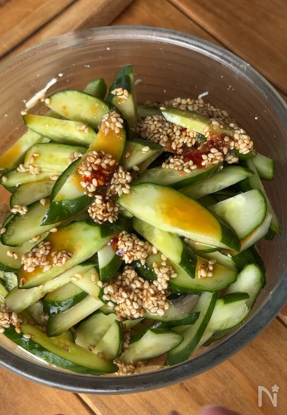 (4) そこへきゅうりと混ぜ合わせた【A】を加える。