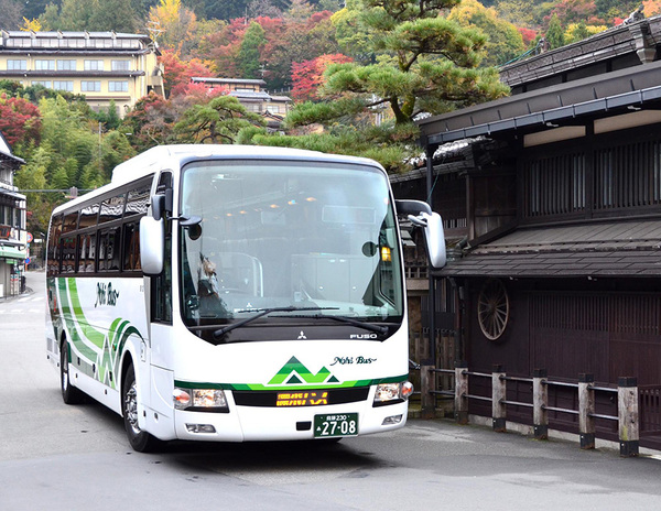 雄大な北アルプスや世界遺産を走る濃飛バス(画像:濃飛乗合自動車)。