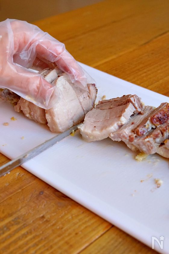 ・加熱直後にカットすると肉汁が溢れるので、余熱で休ませます。