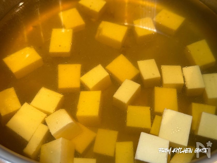 (19) 仕上げに、麩と三つ葉を添えて!