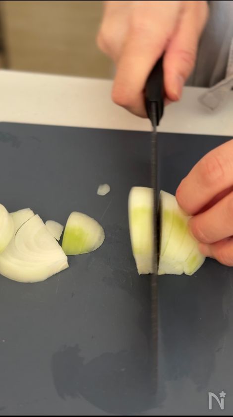 (1) 玉ねぎは、くし形切りに。【A】を混ぜておく。