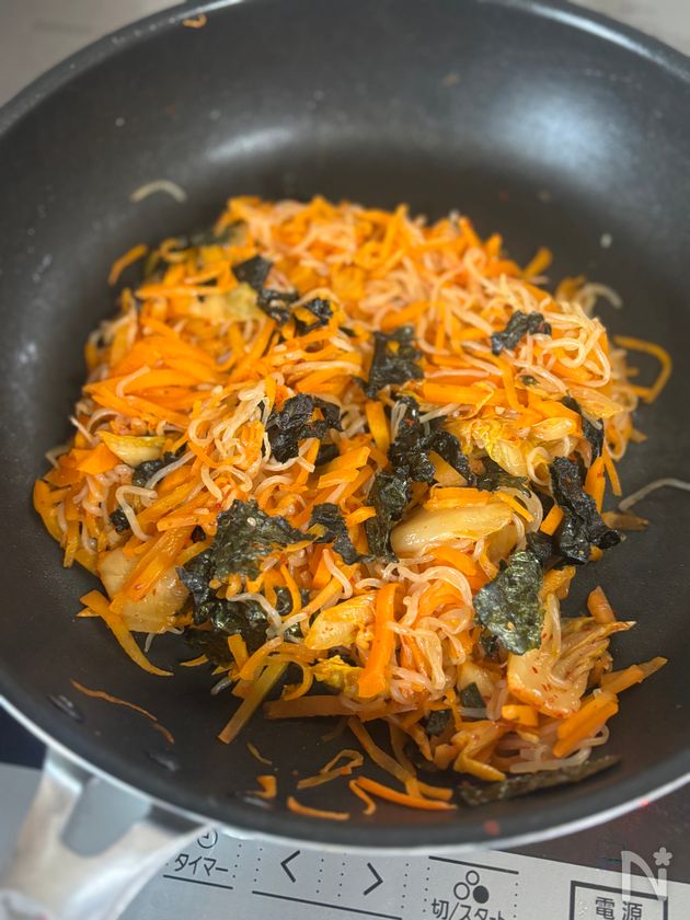 腸活◎【にんじんと白滝の旨辛キムチ炒め】食欲そそる♡