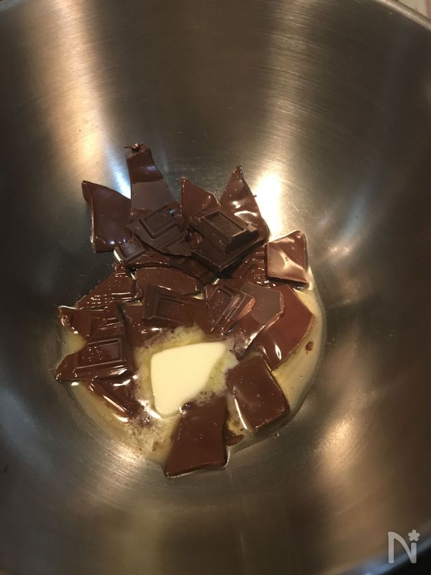 (2) 【B】は合わせてふるっておきます。①に入れてゴムベラでまとめます。