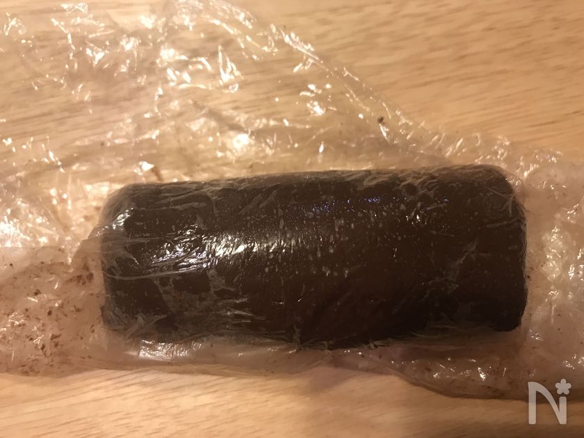 (3) ラップで包んで冷蔵庫で10分程寝かします。