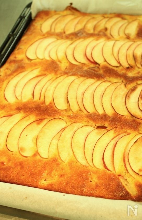(4) クッキングシートを敷いた天板にを流し入れ、190℃に予熱したオーブンで40分焼く。