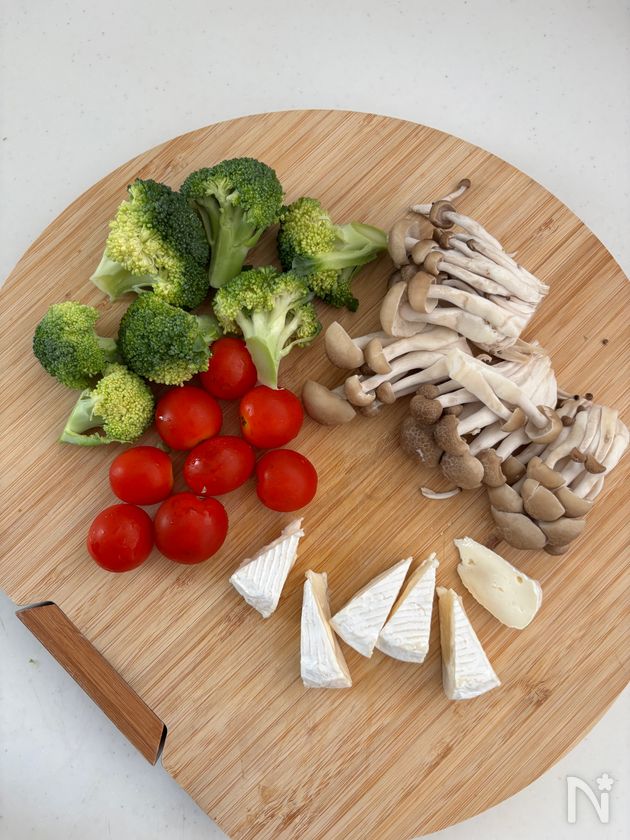 (下準備) さつまいも、にんじん、玉ねぎは食べやすい大きさに切る(お好みの型でくり抜いてもOK)。ブロッコリーは小房に分けて、しめじは石づきを落として、小房に分ける。ミニトマトはヘタを取る。