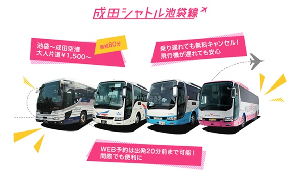 池袋駅西口に発着し、成田空港までを最短80分で結びます。成田空港行が8便、池袋行きが10便の計18便。運賃は大人1900円で、出発24時間前まで予約可能な席数限定の早得プランで事前決済すると1500円になります。