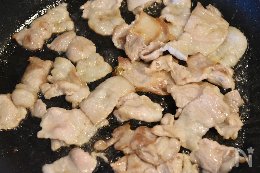 ・豚バラ薄切り肉は焼き色がつくまで焼くと、香ばしくなります。