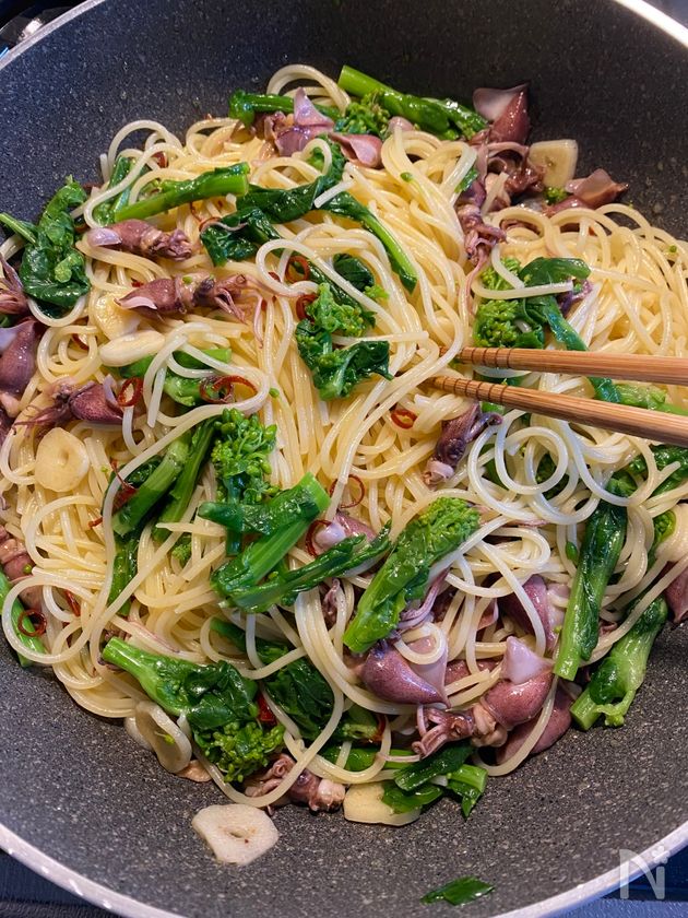 春のごちそう*ホタルイカと菜の花のペペロンチーノ