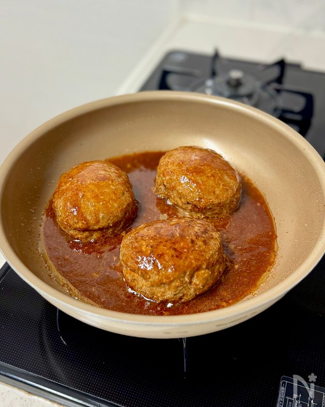 ・タネを一度冷蔵庫で冷やし、焼く直前に成形し直すと、表面がなめらかに仕上がります。その際は、手の平にサラダ油をほんの少し付けておくと作業し易いです。