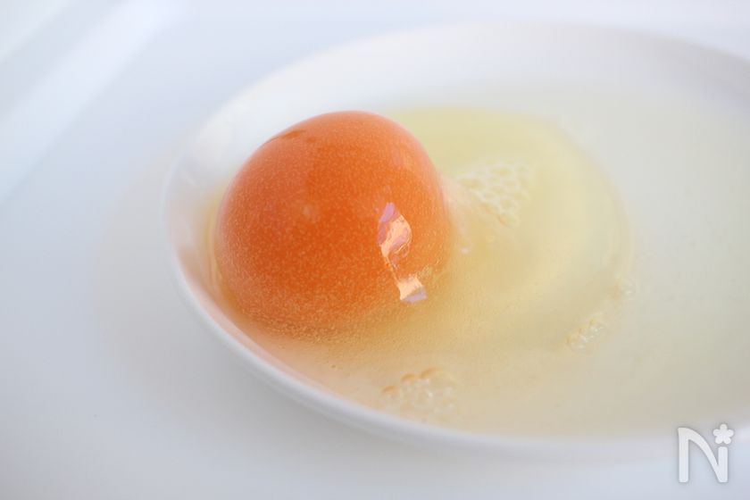 (2) 卵を解凍したら、殻を割って黄身だけを取り出す。
