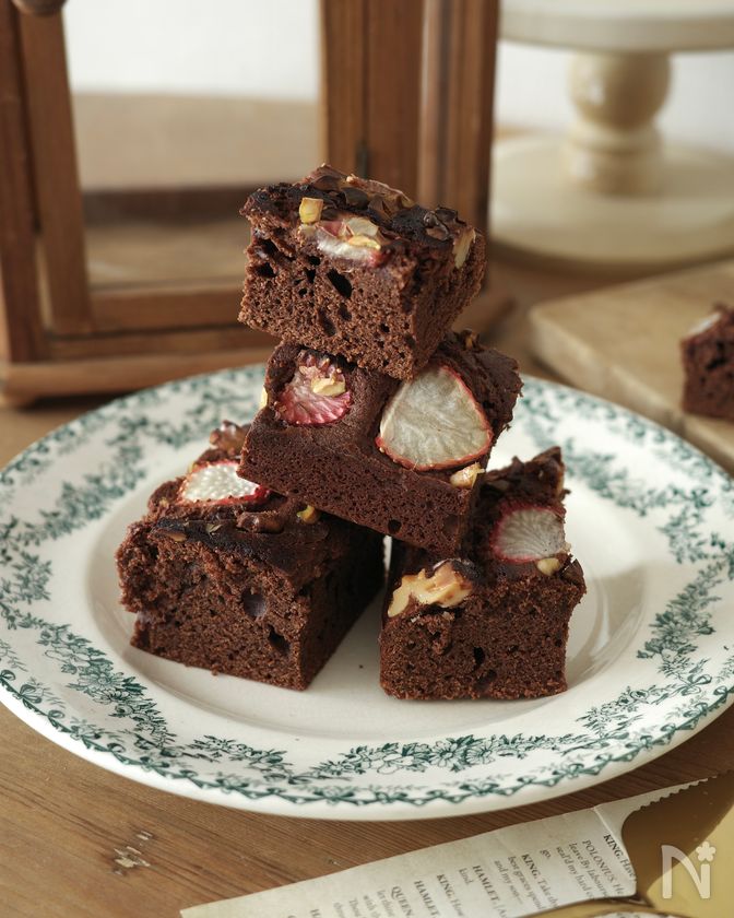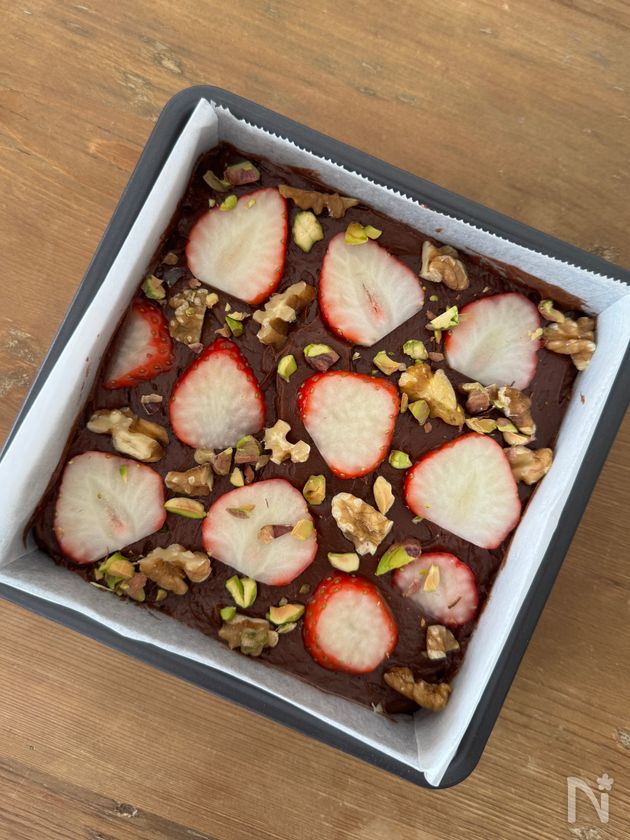 【焼くまで10分!】いちごとナッツの濃厚チョコブラウニー