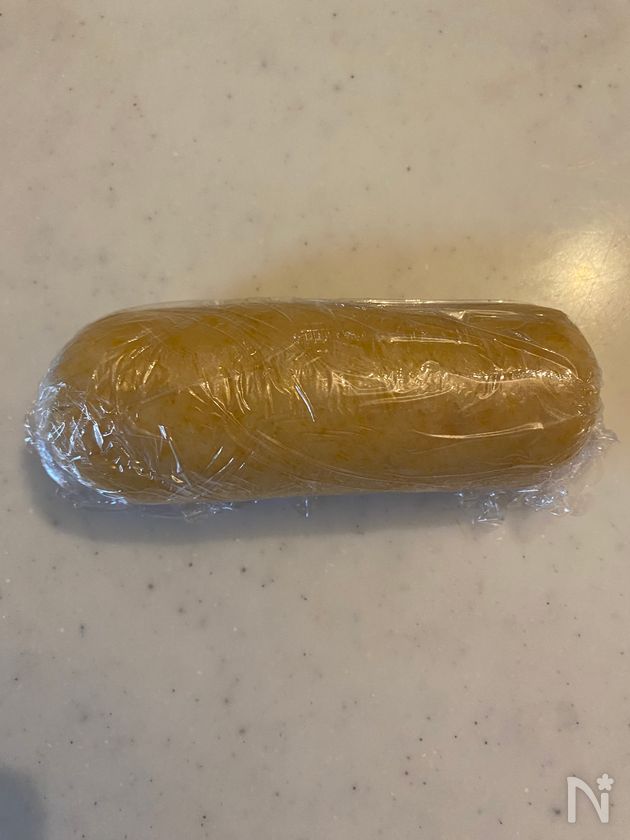 (3) 2をラップに包み棒状にしたら冷凍庫で30分以上寝かせる。