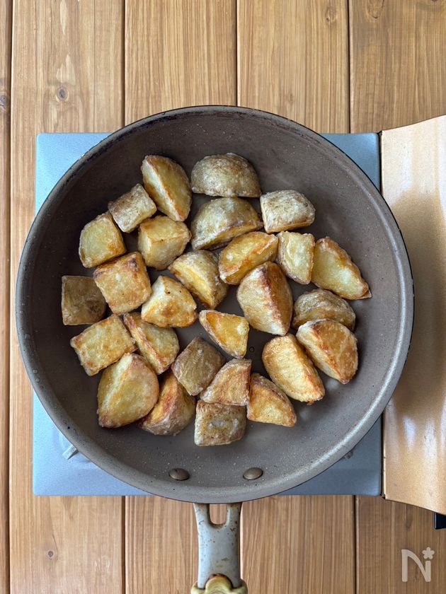 フライパンを再度中火で熱してサラダ油を引き、じゃがいもを加えて表面がカリッとするまで焼く。
