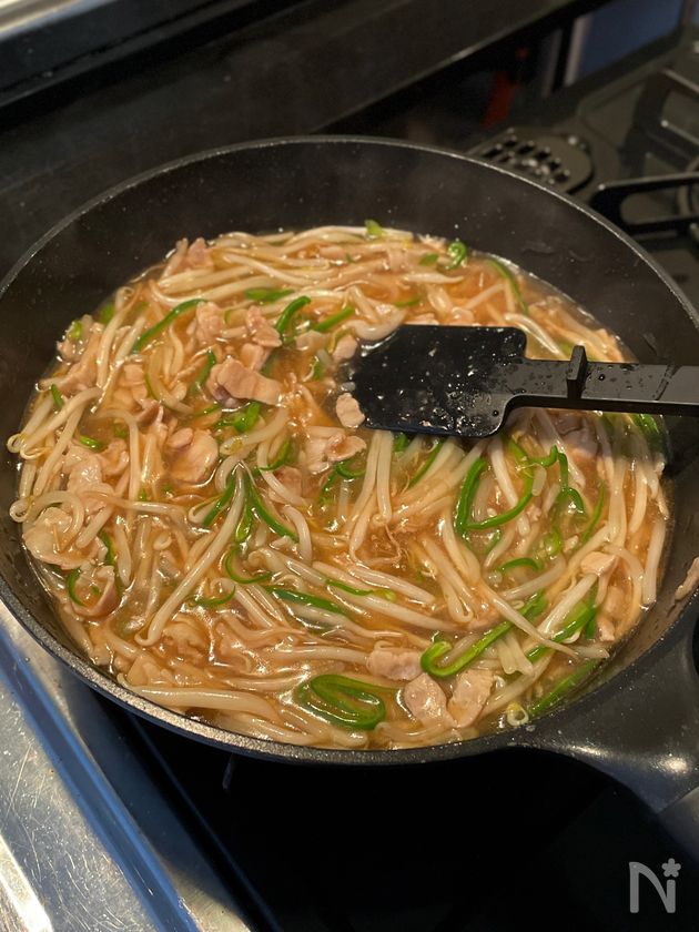 豚バラ肉を炒める際、お肉から脂が出てくるため、油をひく必要はありません。