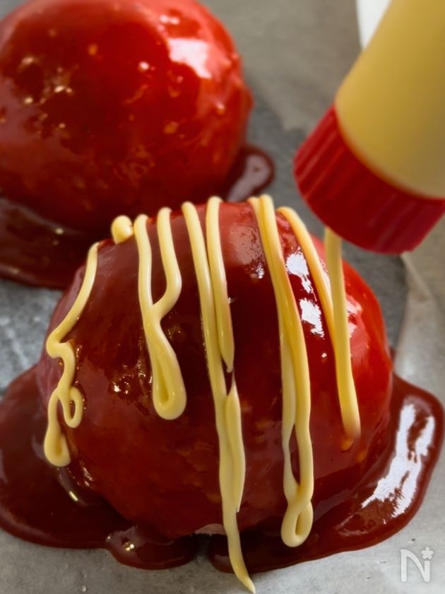 (5) 上にマヨネーズをかける。