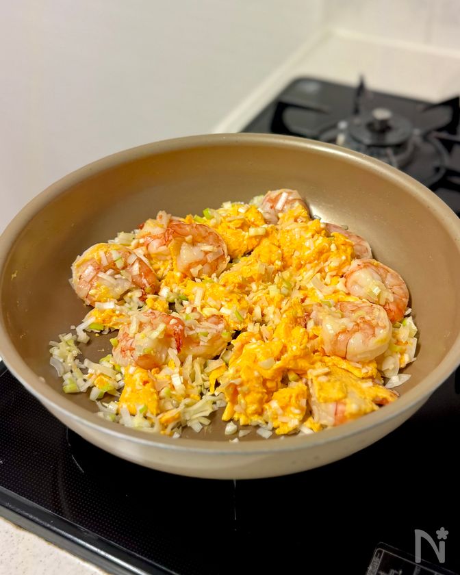 ふわとろ卵とぷりぷりエビのやさしい中華炒め