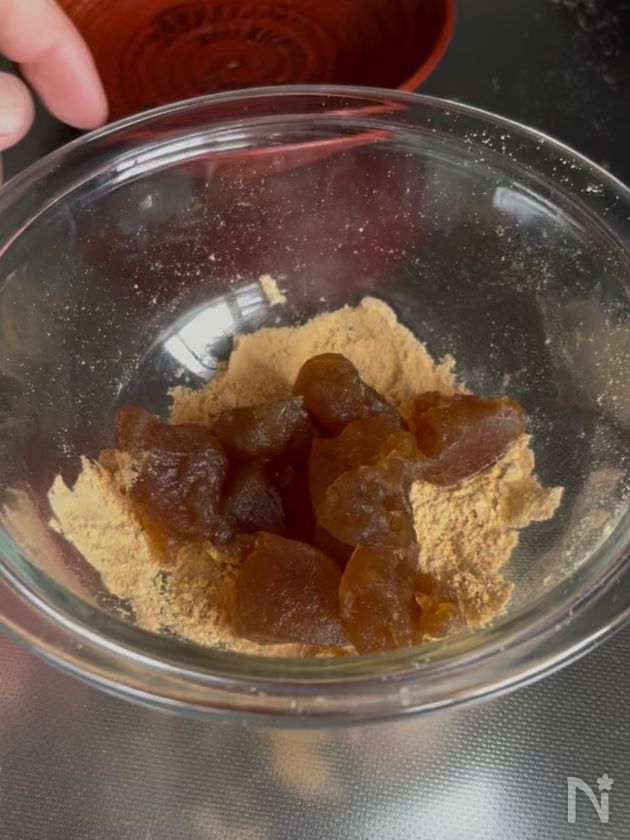 (5) ボウルに移し粗熱が取れたら、スプーンで一口大に救ってきな粉をまぶせば完成。