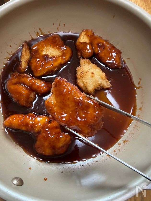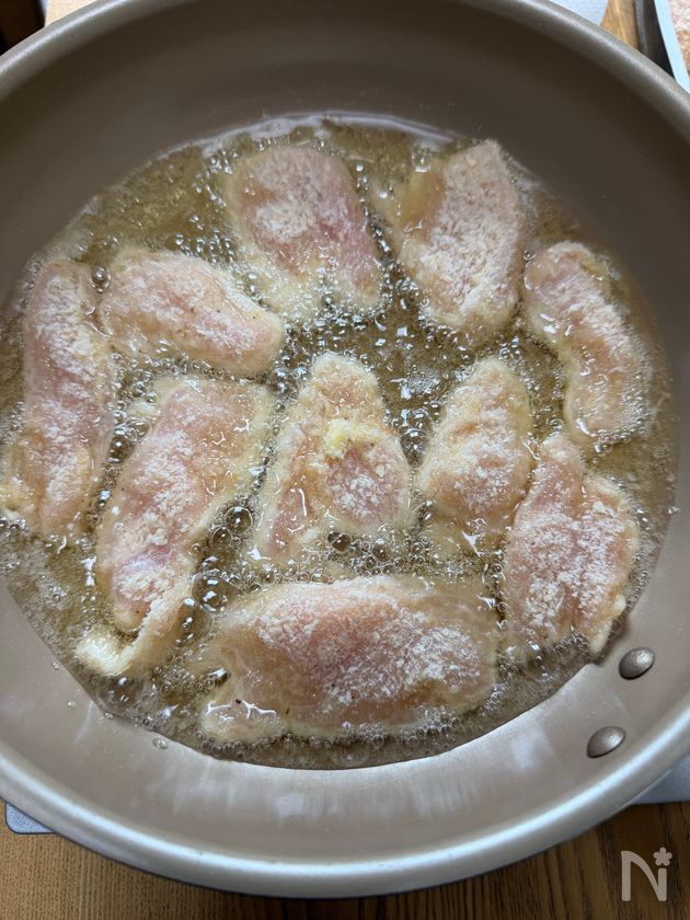 ①を入れ揚げ焼きにする。(目安4〜5分)