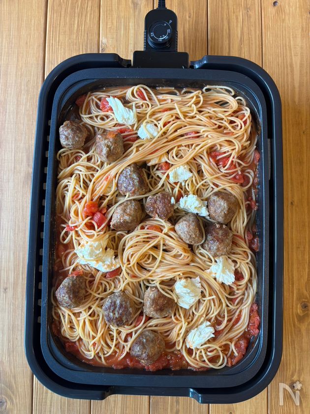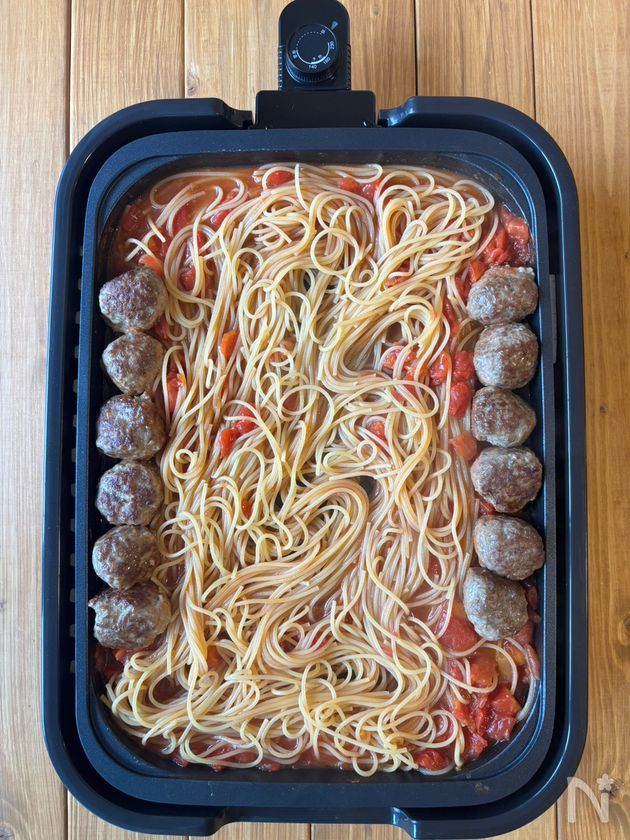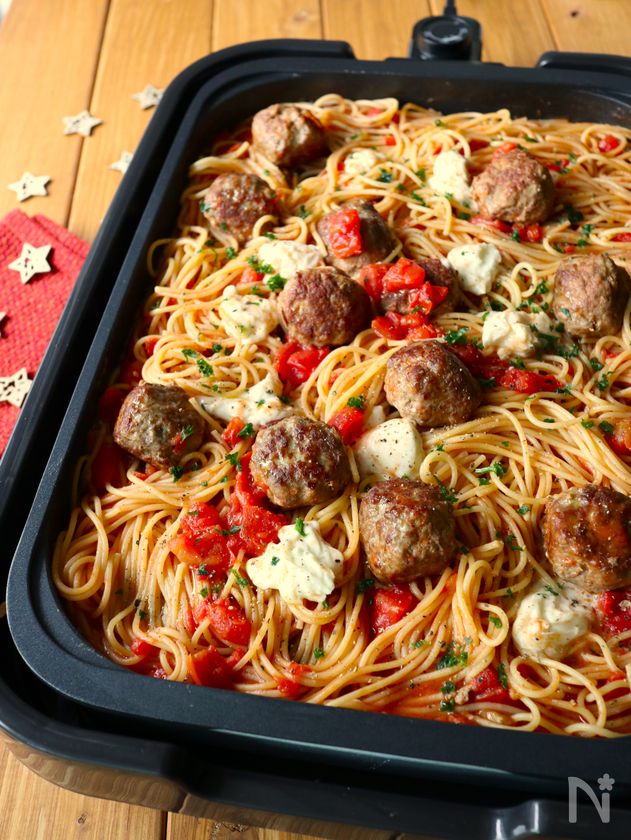 別茹で不要!【ご馳走ミートボールパスタ】ホットプレートで♪
