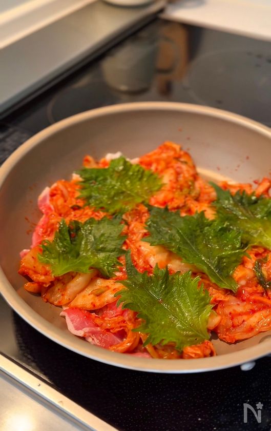 ・豚バラ薄切り肉を使ったので、火の通りは早いですが、しっかり焼いておきたい場合は、片面を焼いて、ひっくり返してからキムチや大葉をのせていってください🙇♀️その場合は、蓋をして蒸す時間を短くしてください😌
