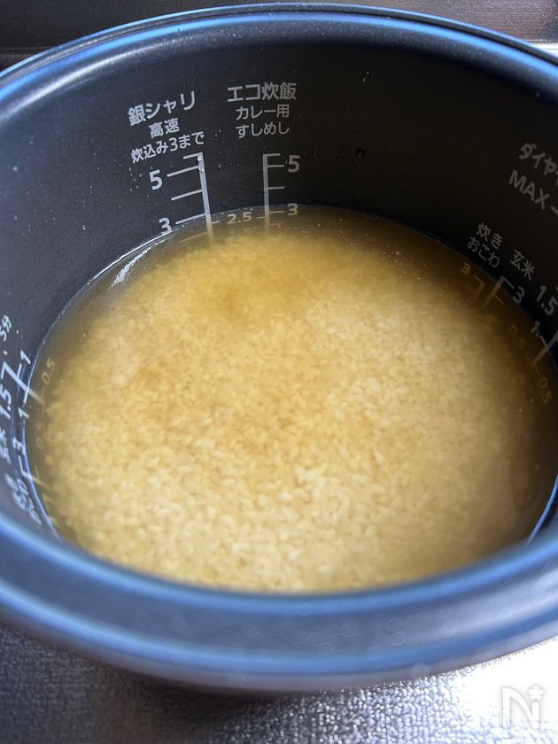 今回のレシピでは5.5合炊きの炊飯器を使用しています。お手持ちの炊飯器の大きさや取扱説明書をご確認のうえ、調理をお願いいたします。