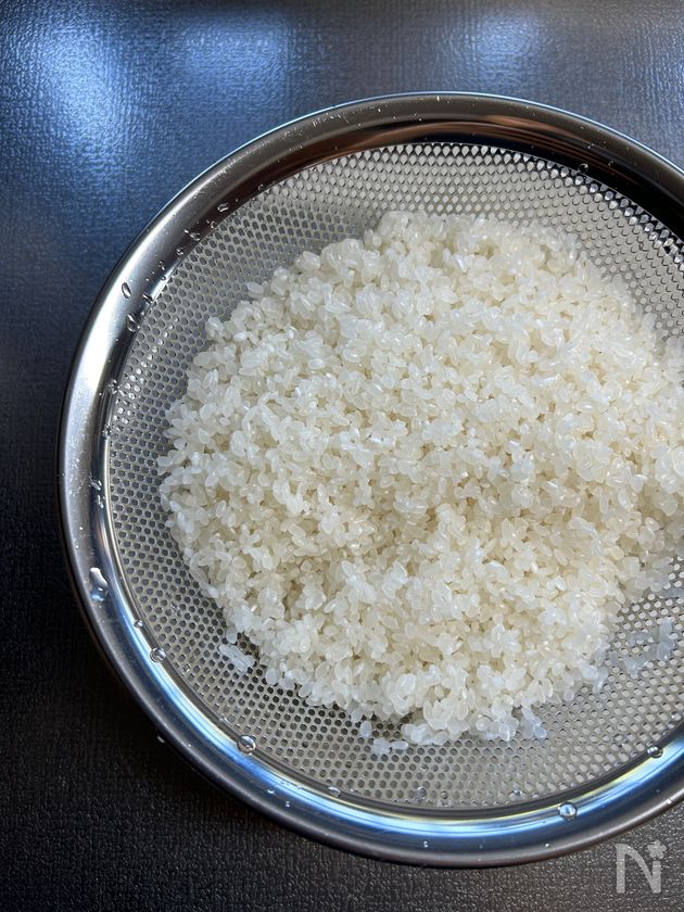 (下準備) 米は洗ってざるに上げる。