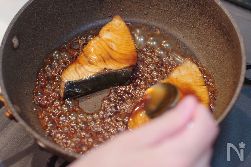 火力が強いとタレが焦げやすくなるので弱火で煮からめてください。