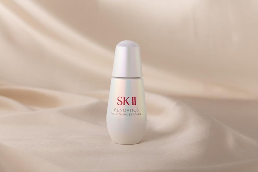 SK-II独自のピテラや美白有効成分であるナイアシンアミド、ビサボロール プロなどを含む新複合成分インフィニット オーラ コンプレックスを配合しています。