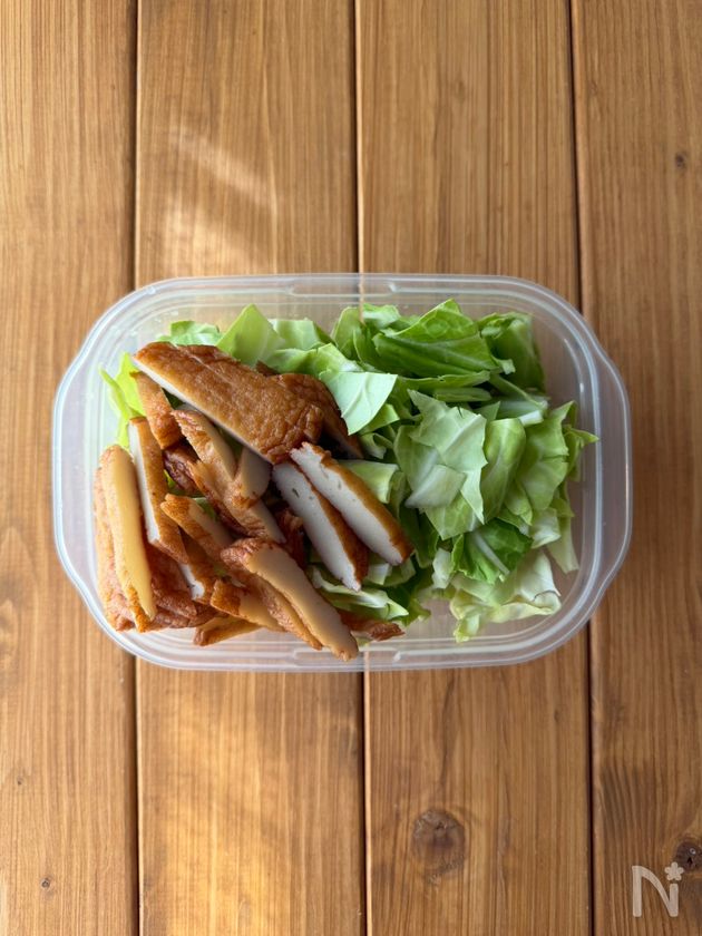 レンジで5分!【キャベツとさつま揚げのオイスターソース和え】