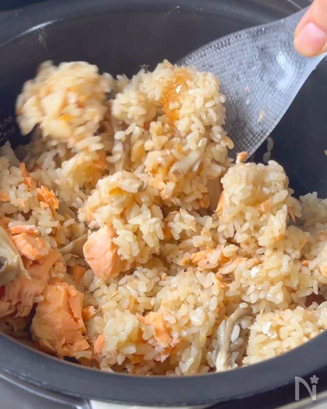 包丁使わず簡単✨秋を味わう!【鮭と舞茸の炊き込みご飯】