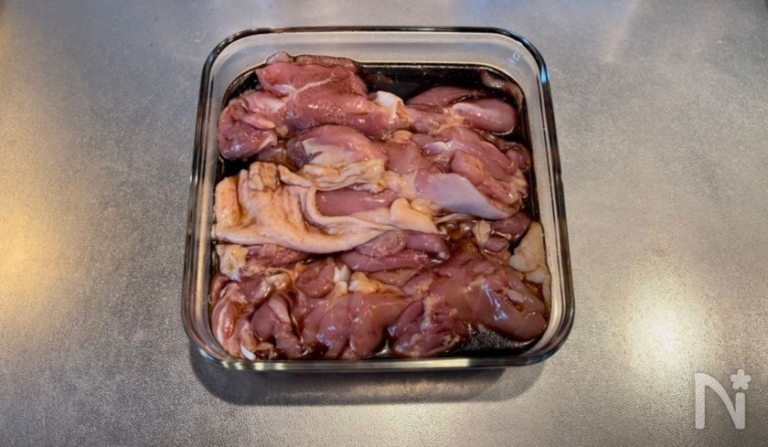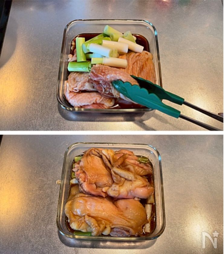 ①鶏肉にたれを10分漬ける→味しみでより馴染みます♡