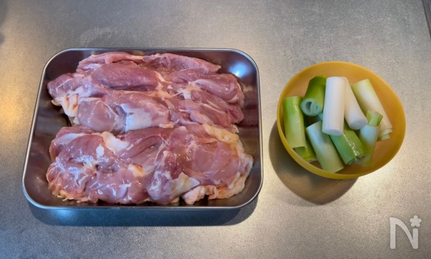 (下準備) ・鶏もも肉の皮目に数カ所、包丁で穴をあける。