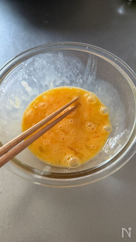 (5) ボウルに卵を溶き、【B】を混ぜる。