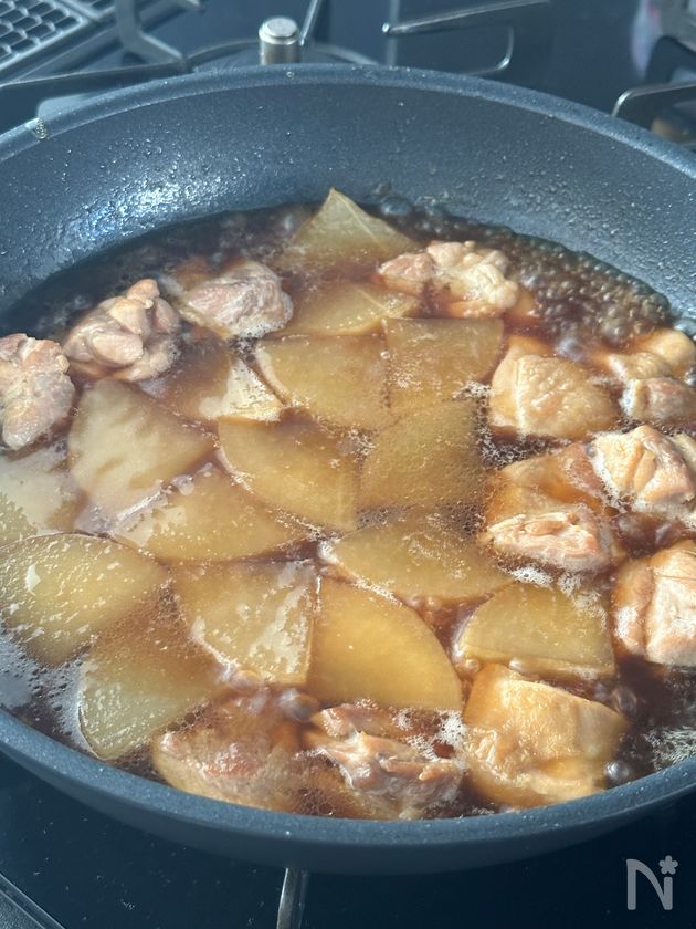 (大根が崩れやすいのでフライパンをゆするようにしながら煮詰めると◎)