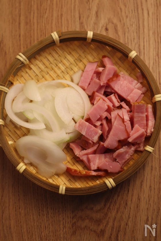 (下準備) ・玉ねぎは薄切りにする。