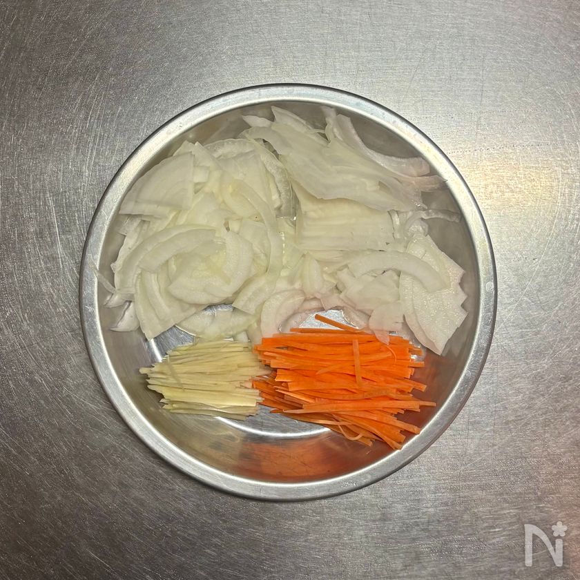 にんじんはスライサーなどでごく細いせん切りにする。