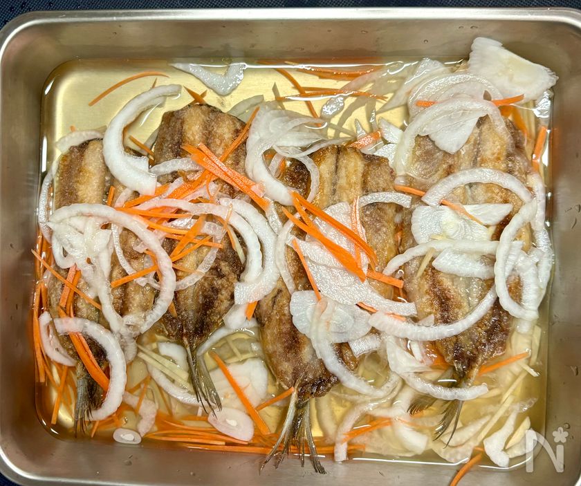 ・より本格的な南蛮漬けの味わいにしたい場合は、工程4で赤唐辛子(1/2本分)を小口切りにして加えてください。