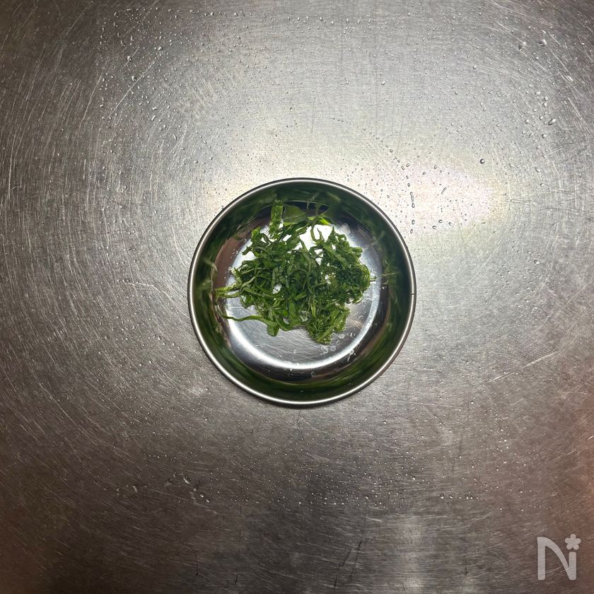 (3) 青じそはせん切りにする。
