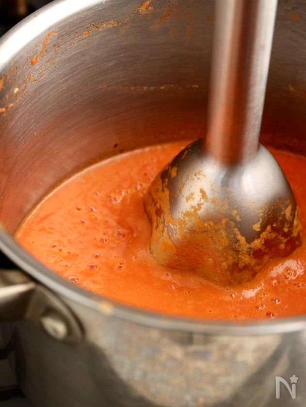 (5) 粗熱が取れたらえびのみ取り出し、ブレンダーやミキサー等で撹拌する。